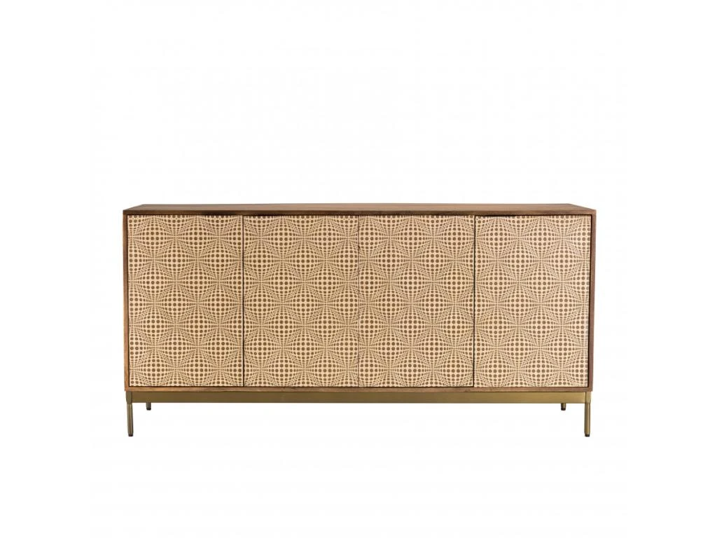Buffet Bahut Armoire Console Meuble De Rangement Bois De Sesham Solide Imprimé Doré 90 Cm 4402271