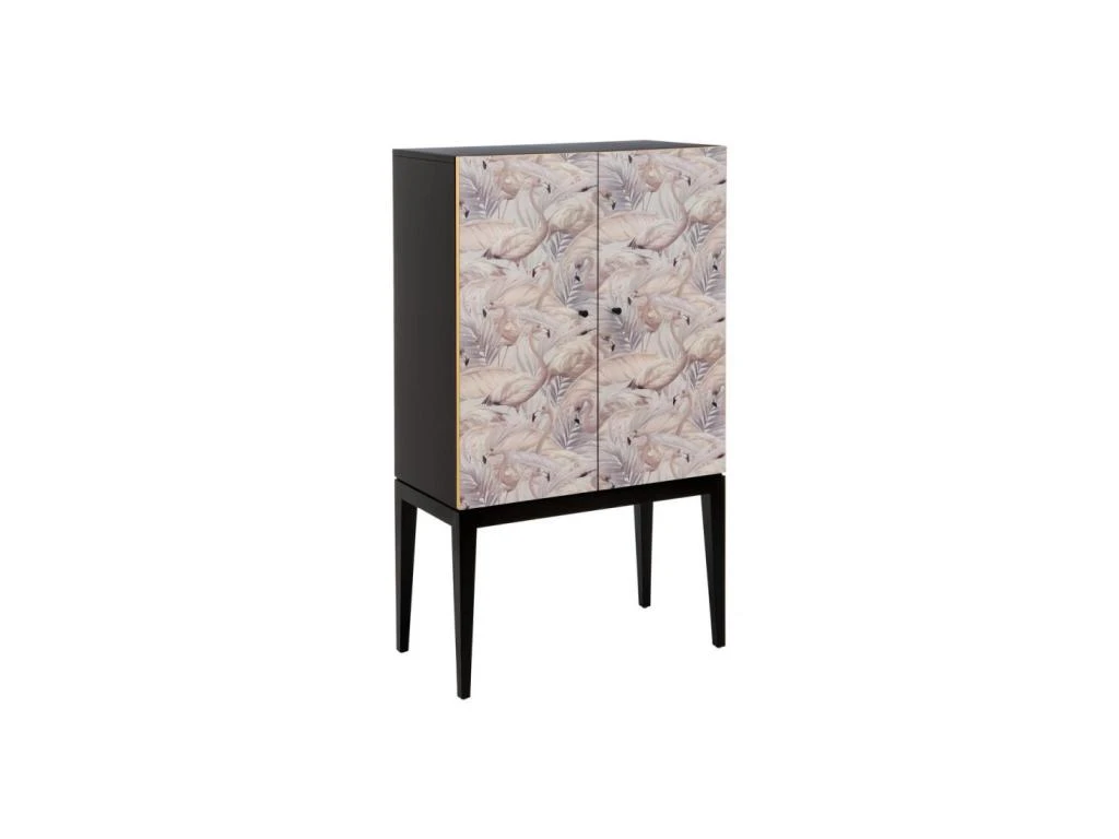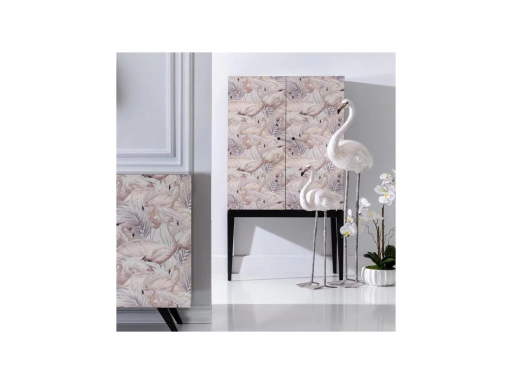 Réalisé en bois de Pin pour une qualité satisfaisante ce meuble cabinet met en avant un décor Flamands roses sur ses deux portes.