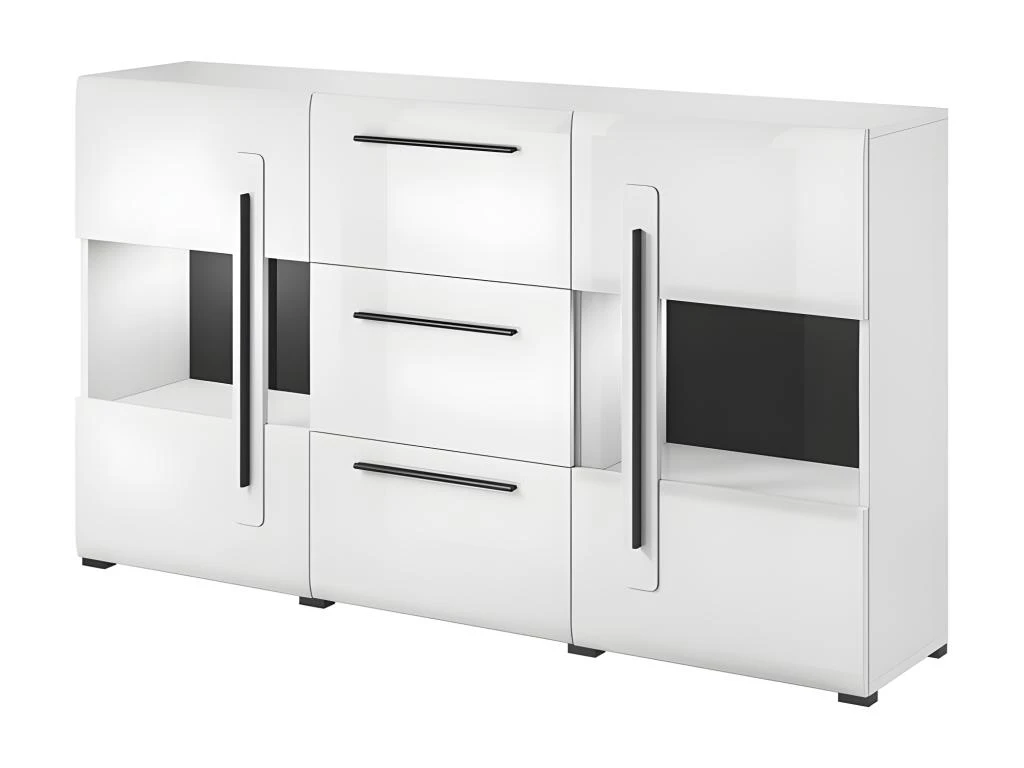 – CARACTÉRISTIQUES : Buffet avec 2 portes partiellement vitrées avec éclairage LED et trois tiroirs.