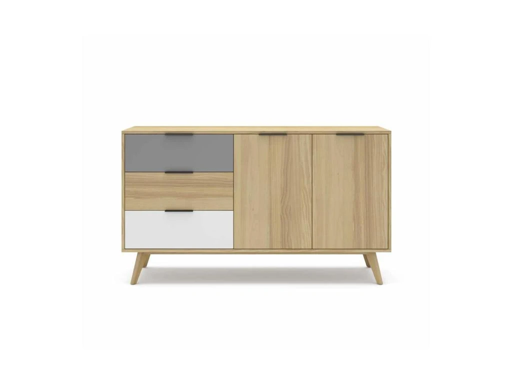 Apportez chaleur et modernité dans votre salle à manger avec ce buffet 2 portes 3 tiroirs mettant à l’honneur tous les codes du design Scandinave.