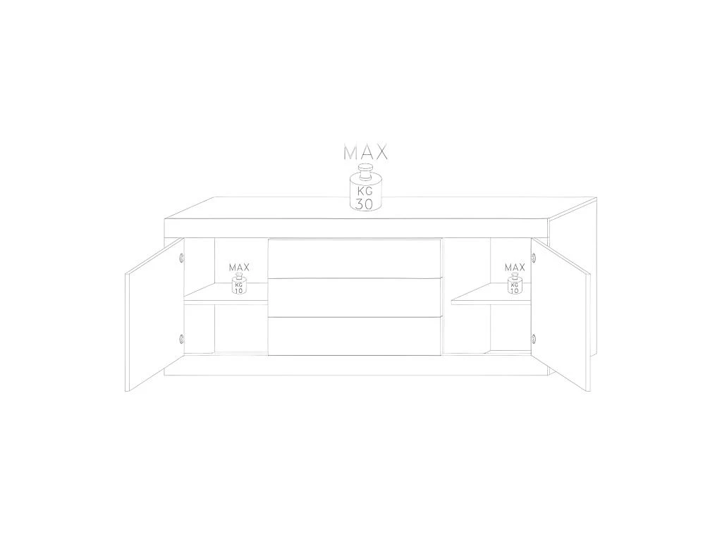 La qualité de réalisation de ce buffet fabriqué en Italie promet une qualité perçue valorisante, les panneaux de forte épaisseur garantissent une stabilité satisfaisante et la quincaillerie prémium assure un fonctionnement fluide et silencieux.