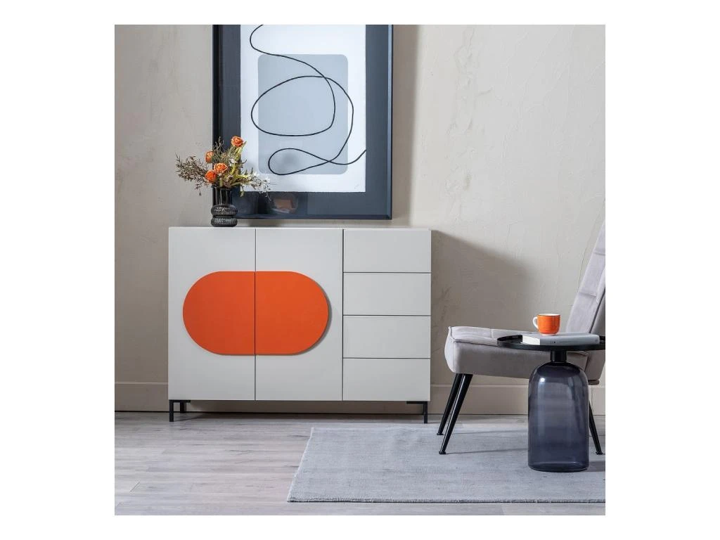Boostez la déco de votre salle à manger avec ce buffet 2 portes 4 tiroirs issu de la tendance rétro Pop !