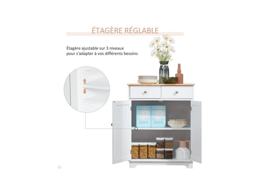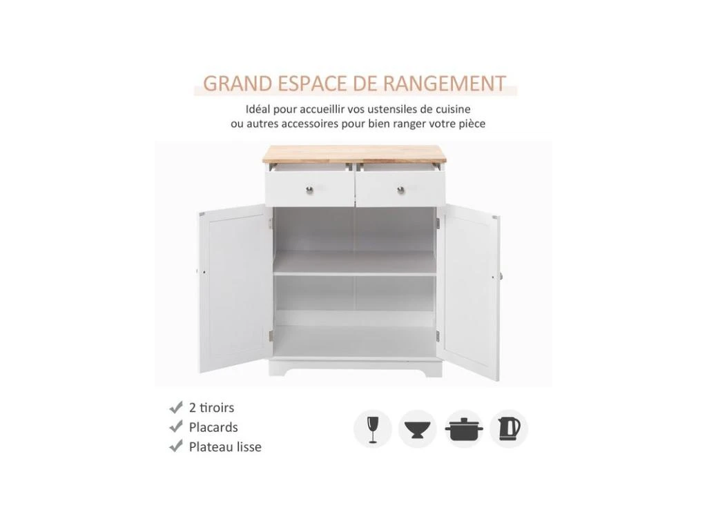 - Charge max. recommandée : 20 Kg (plateau), 10 Kg (étagère), 2 Kg (par tiroir)