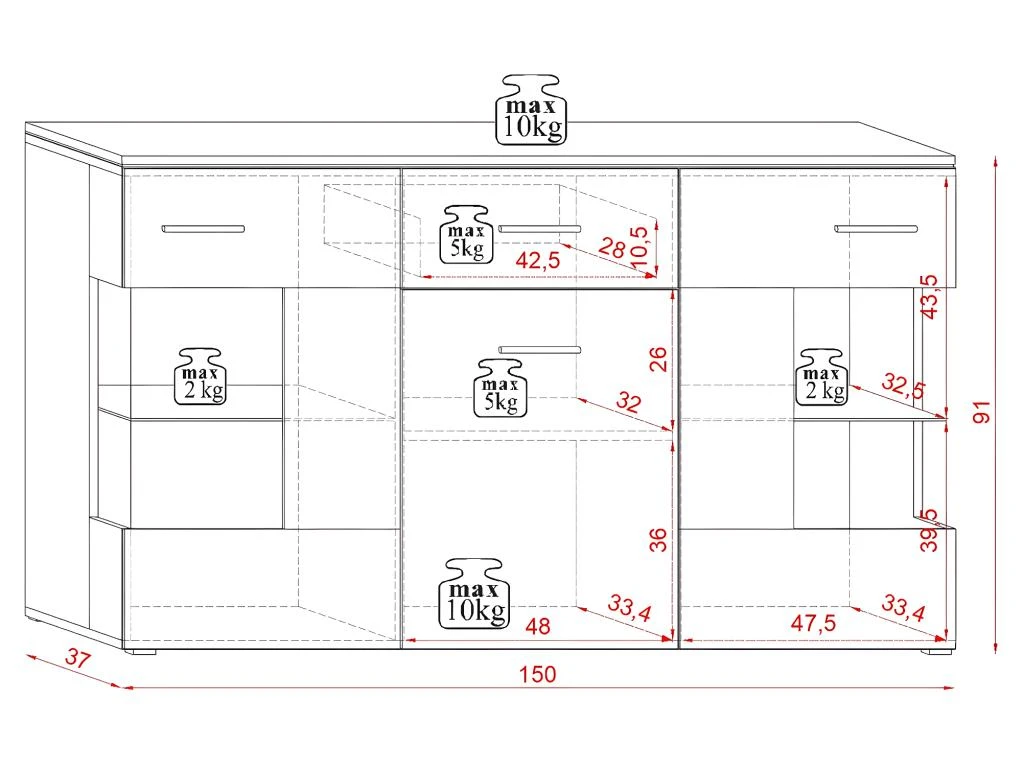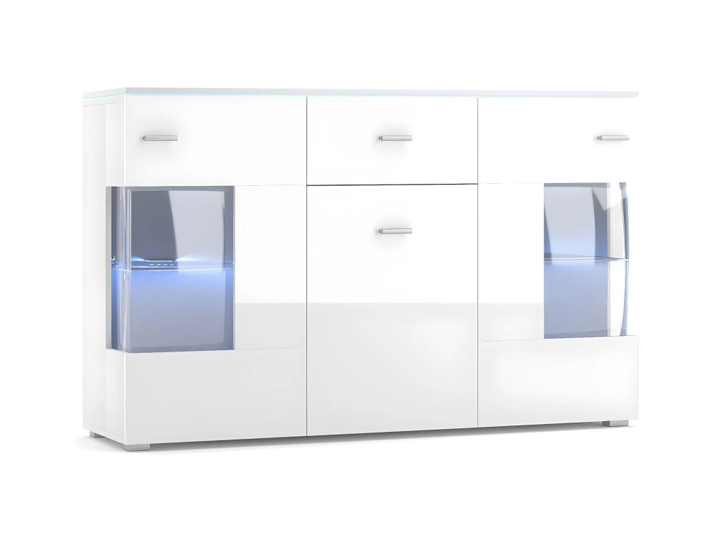 Caractéristiques: 3 portes – 1 tiroir avec glissière à billes – 3 étagères dont 2 en verre – LED – Inclus – Lumière RGB (rouge, vert, bleu, blanc) – LED à brancher sur prise secteur – Télécommande avec fonctions allumer / éteindre et lumière fixe, dégradé ou clignotante