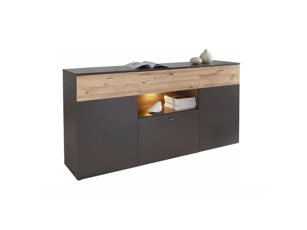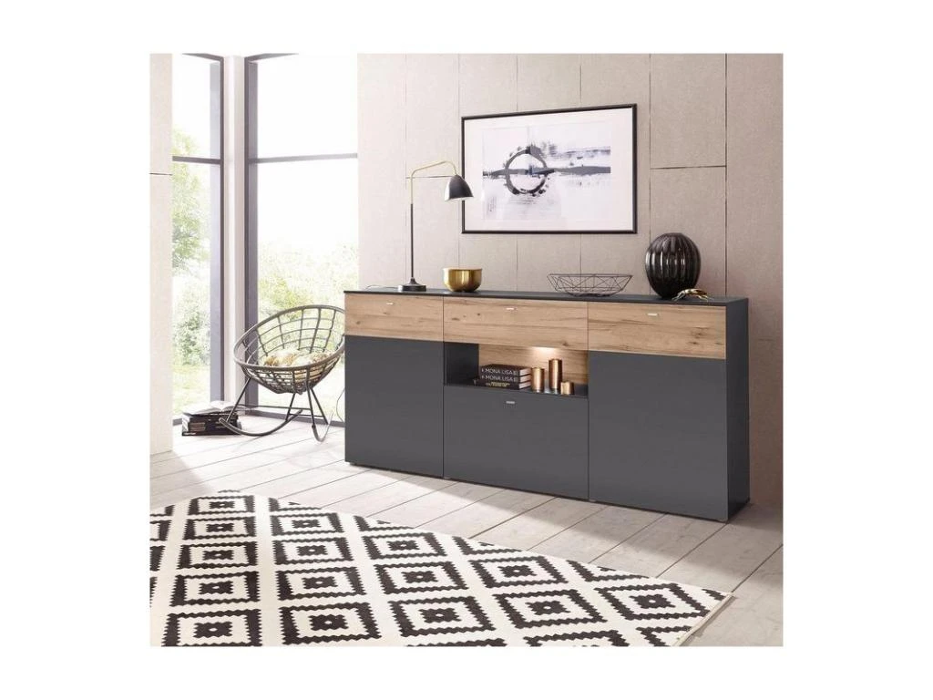 - COMPOSITION : Panneaux de particules Ă©paisseur 15 mm finition dĂ©cor bois chĂȘne naturel et laquĂ© gris anthracite