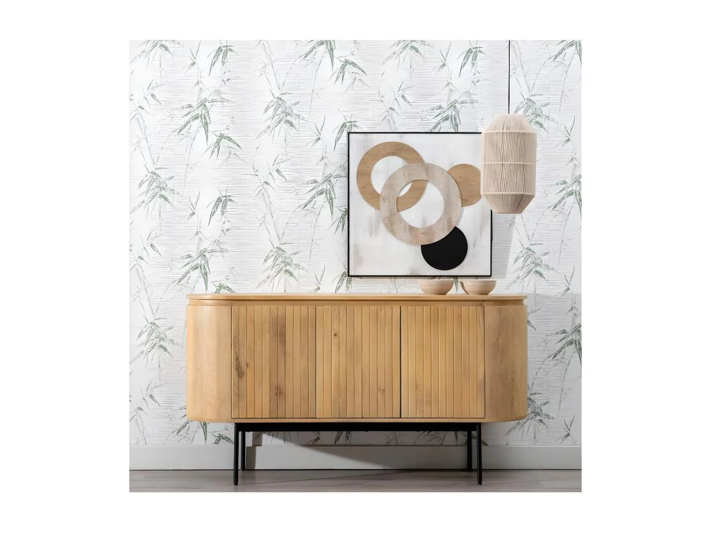 Reposant sur un piétement robuste et stable réalisé en métal le corps de cette enfilade est tout en rondeur, la légèreté visuelle ainsi offerte permettra d’apporter de la fluidité dans votre coin repas.
