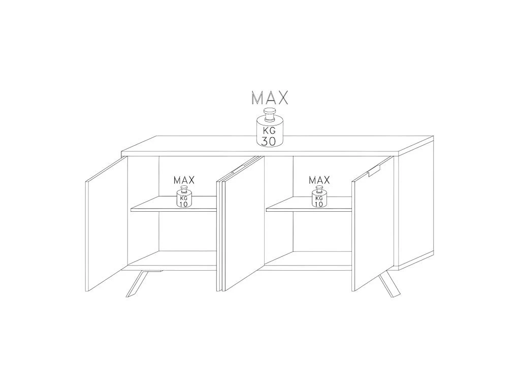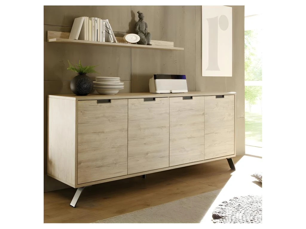Preuve d’une robustesse sans ombrage et d’une qualité parfaite, cette enfilade fabriquée en Italie met en oeuvre des panneaux de plus de 20 millimètres certifiés FSC (éco-responsabilité garantie), le décor Chêne clair est en mélamine (idem plans de travail de cuisine) pour une robustesse exceptionnelle.