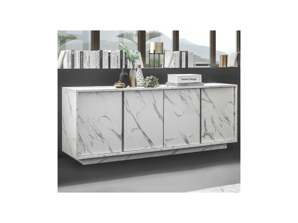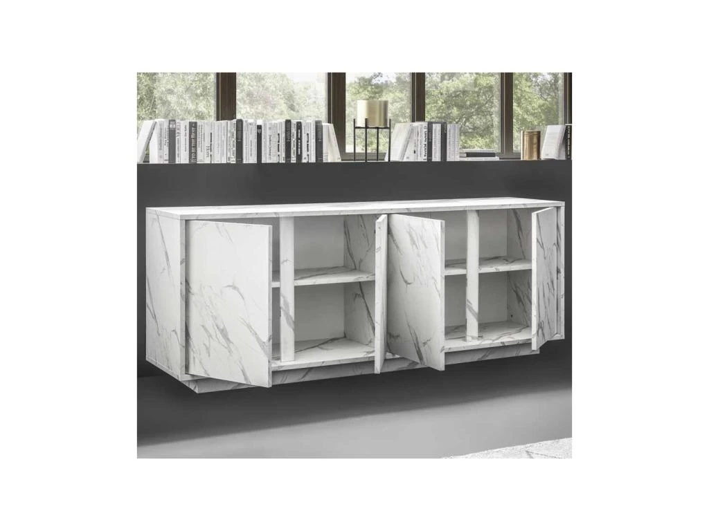 Totalement revêtue d’une mélamine finition Marbre Blanc au rendu très probant, cette très belle enfilade bénéficie d’une grande résistance aux rayures et à l’abrasion pour une durée de vie hors du commun.
