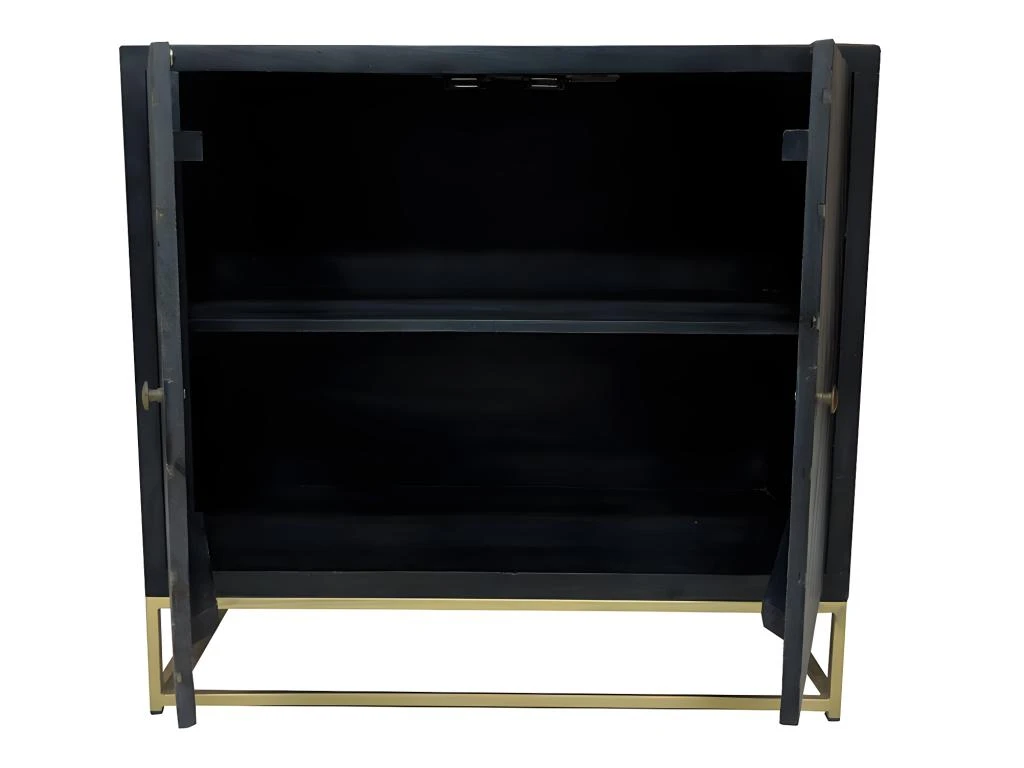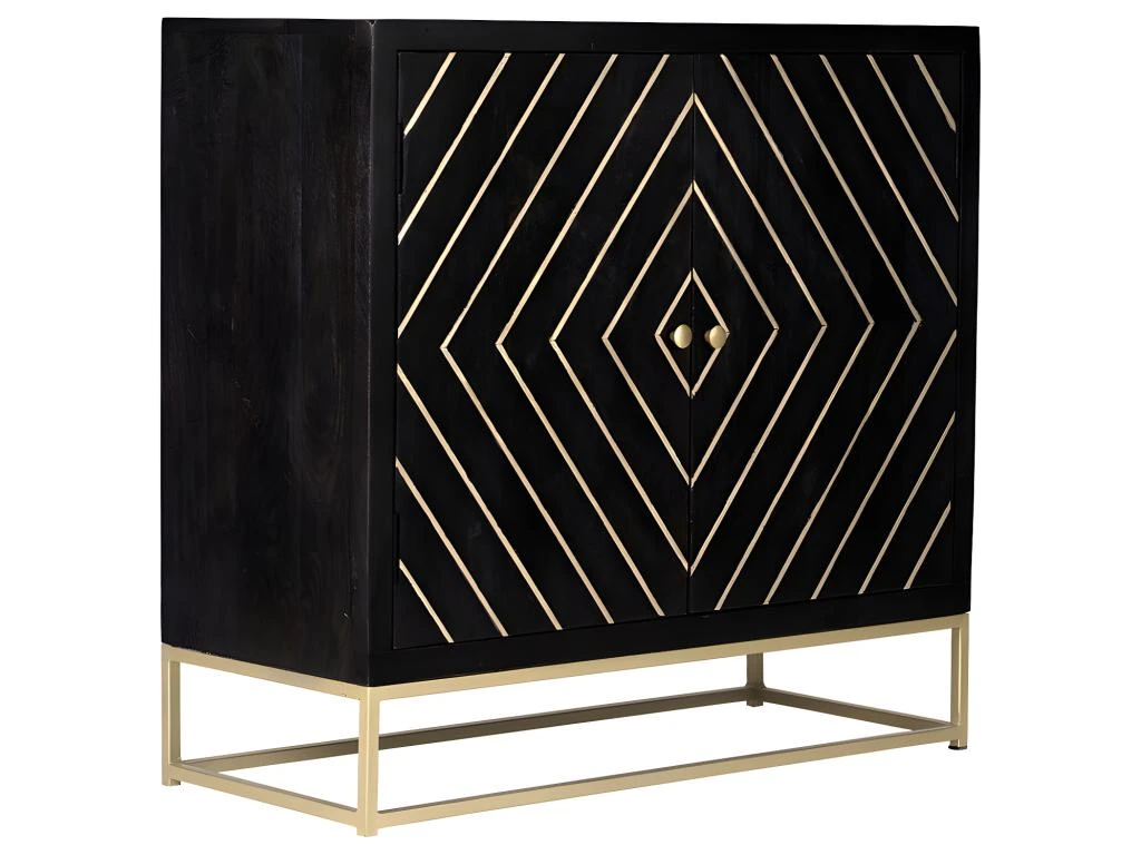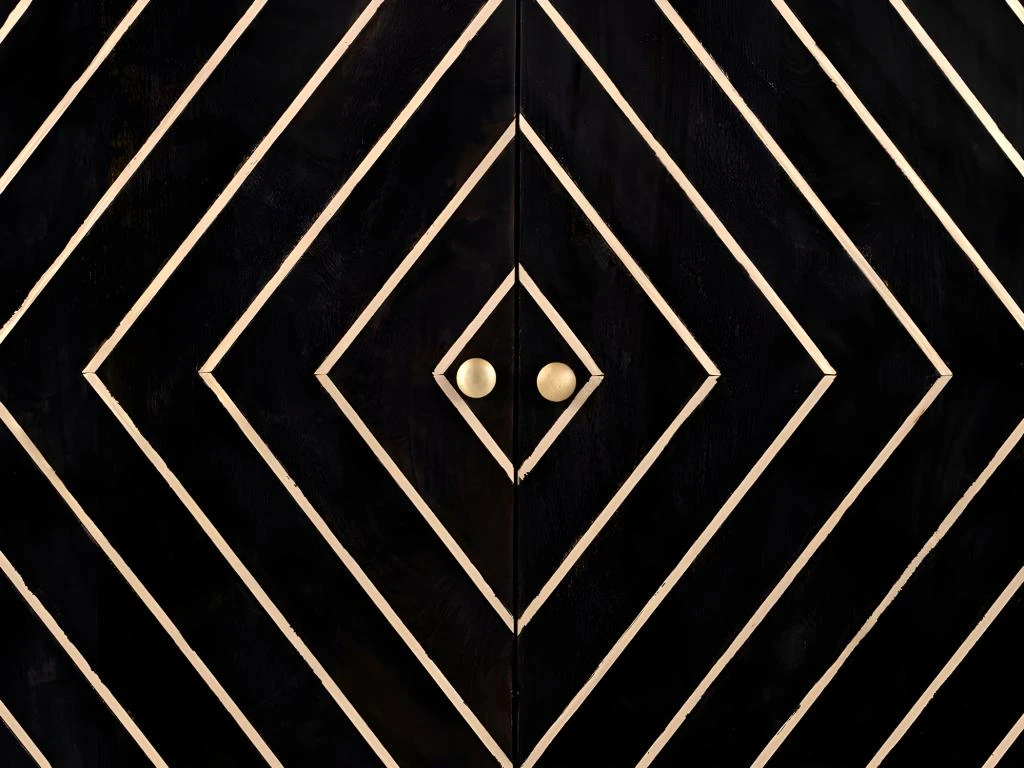 Chic et élégant, le buffet PRISMIN apporte un peu de glamour à votre chambre ! Inspirée des meubles Art déco du début du siècle, elle mêle avec brio la noblesse du bois et le scintillant du métal doré ! Ses motifs géométriques dorés donneront une touche de pep’s à votre déco. En bois de manguier, le buffet PRISMIN vous assure une robustesse dans le temps qui saura vous réjouir !