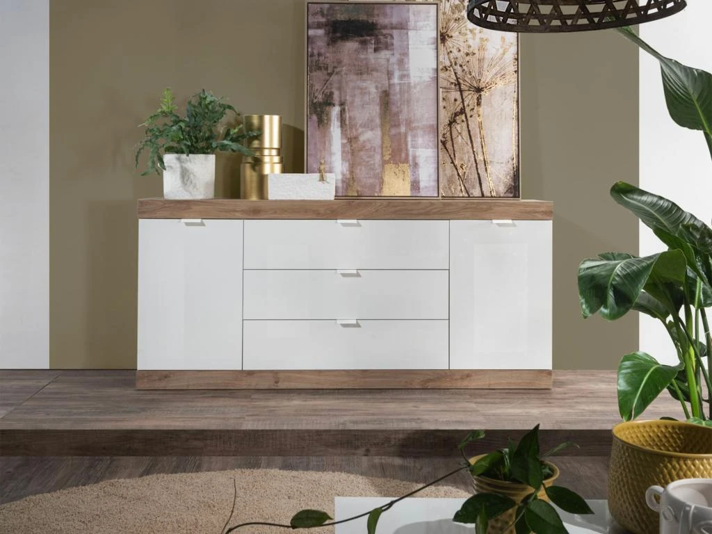 La collection EVOLIA propose un alliage de coloris très tendance : du blanc laqué ainsi que du naturel mélaminé. De plus, le design de cette collection est pensé de manière à vous offrir de nombreuses possibilité de rangement.