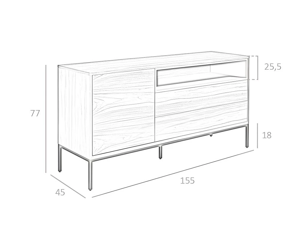 Buffet de design moderne avec une structure originale en bois plaquĂ© en noyer naturel de 0,5mm d’Ă©paisseur. Un grand buffet parfait pour ajouter la touche de tendance et de style que vous recherchez dans votre chambre Ă coucher, ainsi que pour tout garder en ordre grâce Ă son espace de rangement avec deux tiroirs et un placard latĂ©ral Ă système push-pull.