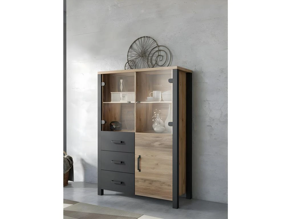 – CARACTÉRISTIQUES : Buffet haut avec 3 portes et 3 tiroirs.
