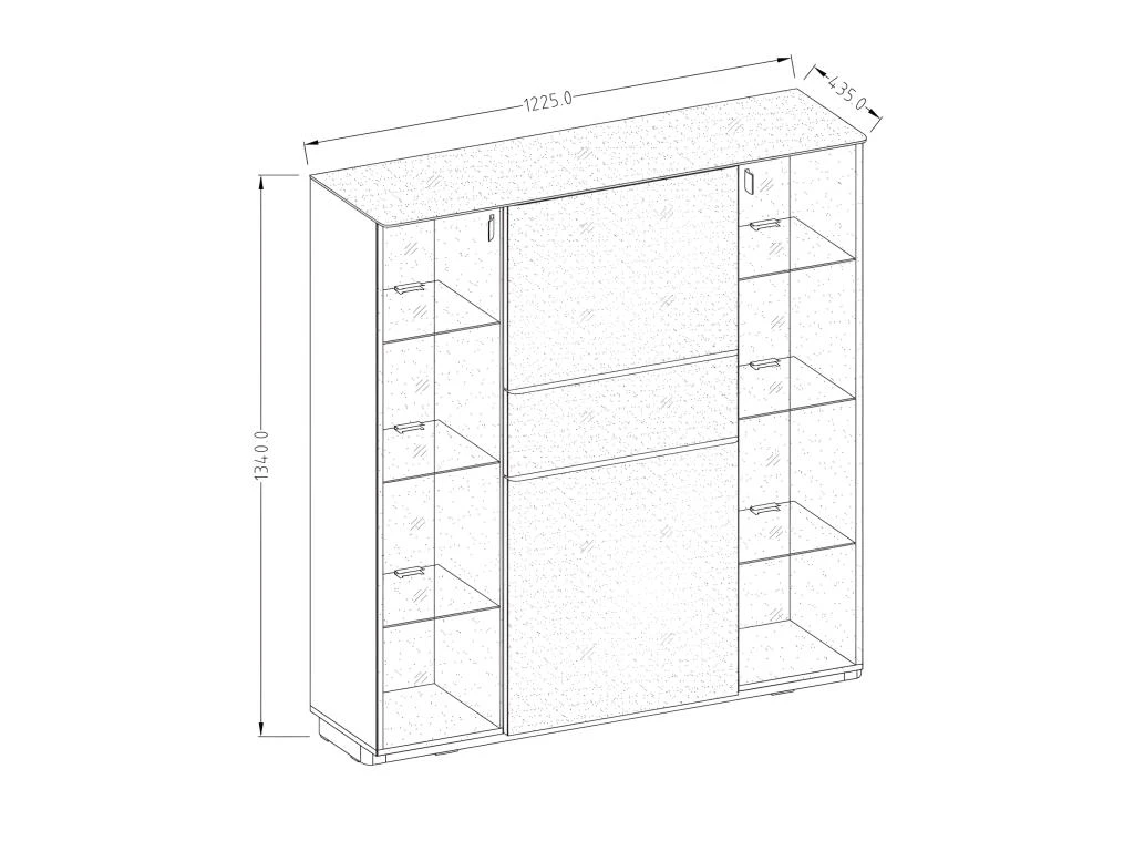 – CARACTÉRISTIQUES : quatre portes dont deux vitrées et une abattante avec de nombreuses étagères à l’intérieur et un grand tiroir. Embase arrondie