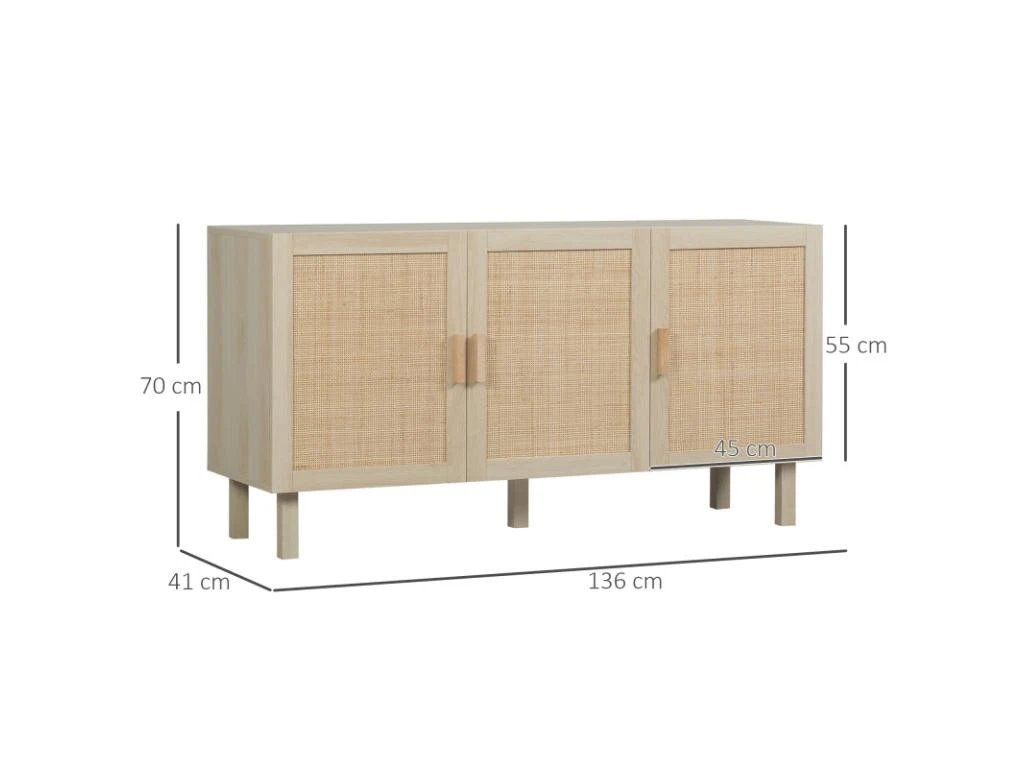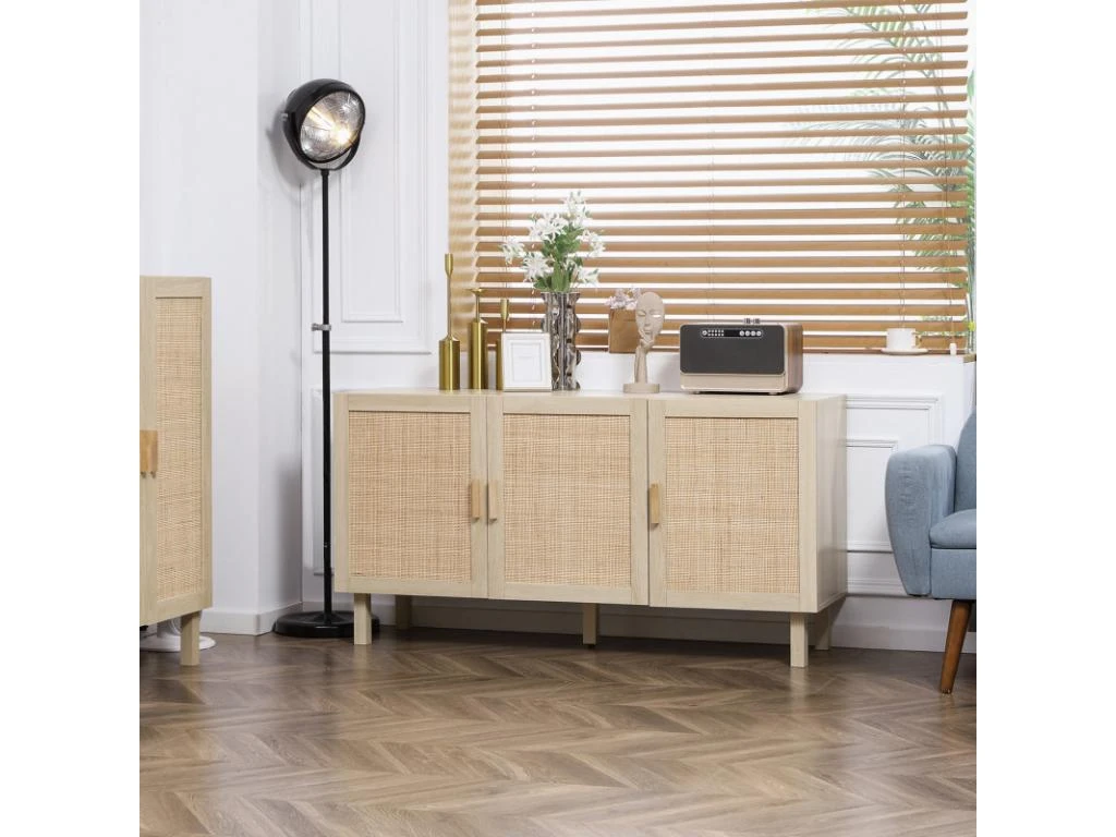 – Grand buffet style bohème chic naturel avec cannage en rotin et aspect bois clair veinage apportant charme et élégance à votre intérieur