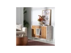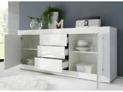 Buffet 2 Portes Et 3 Tiroirs Collection RAMOS. Éclairage LED Intégré. Coloris Blanc Brillant Et Noir
