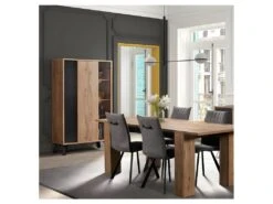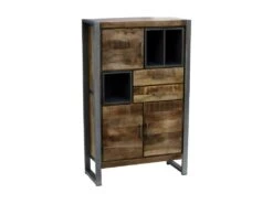 Alana Vitrine Avec 3 Portes Et 2 Tiroirs, En Bois D’acacia TeintĂ© Brun, LivrĂ©e PrĂȘte Ă L’emploi.