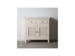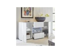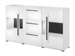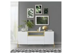 Buffet 180cm Collection BREDA Deux Portes Partiellement Vitrées Et Trois Tiroirs. Coloris Blanc.
