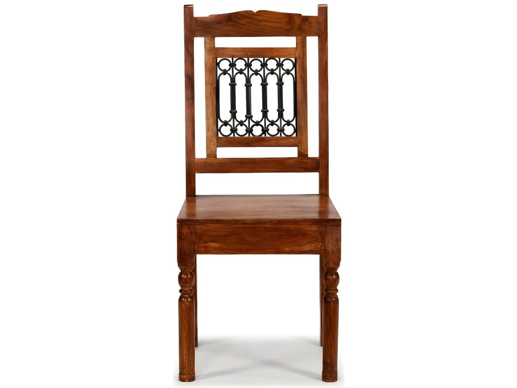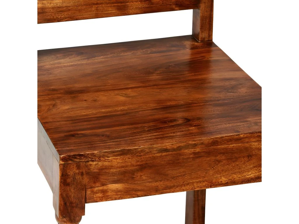 - Matériau : bois d’acacia massif avec une finition couleur miel + détails décoratifs en fonte