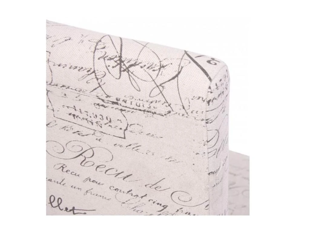 Confortable et robuste recouverte de tissu avec lettrage piètement bois coloris clairs.