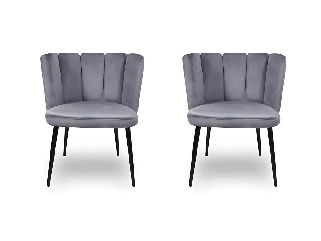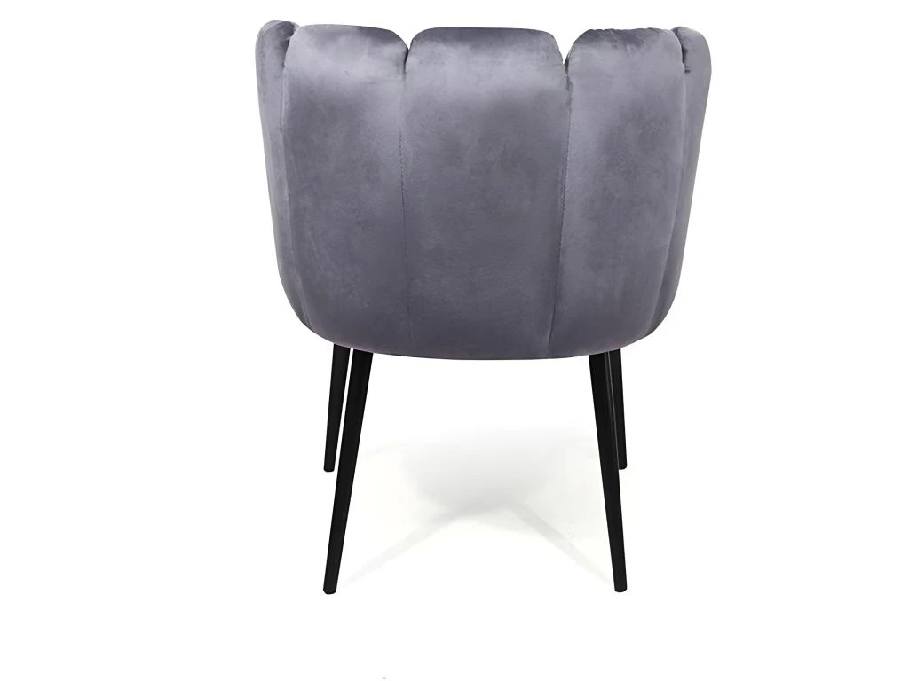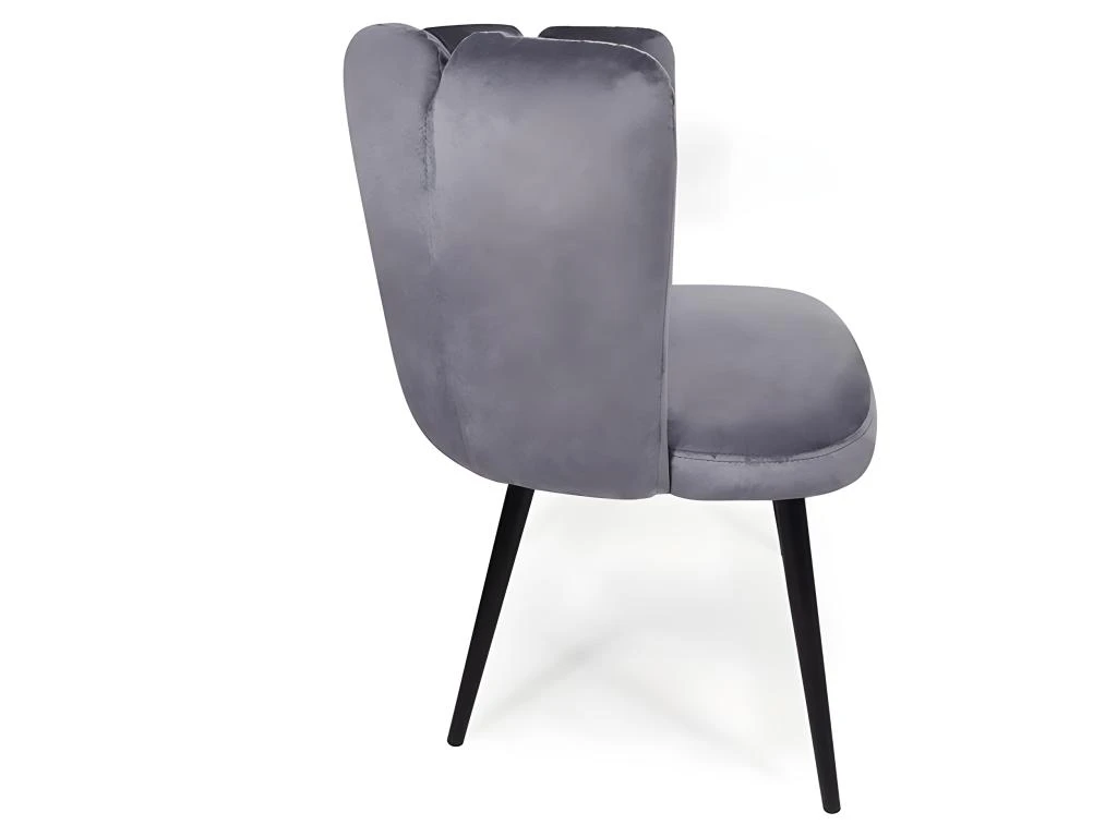 Un dossier haut et incurvé,les chaises design BELAIR au revêtement velours avec 4 pieds en métal noir.