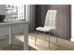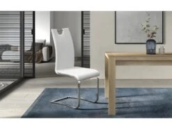 Chaise MERIL PU Blanc, Dimensions: H96 X L42 X P55 Cm, Idéal Pour Une Salle à Manger Tape-à-l’œil