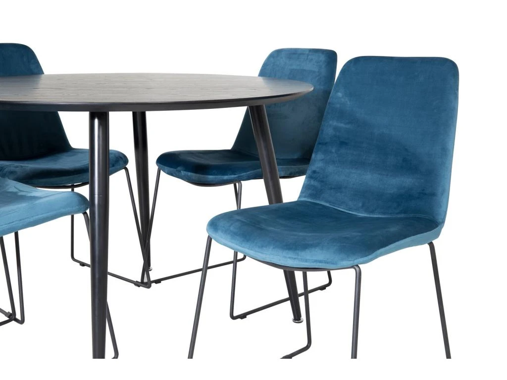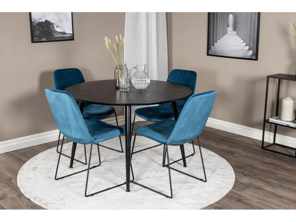 DippØ115BLBR Ensemble Table, Table Noir Et 4 Arrow Chaises Velours Bleu.