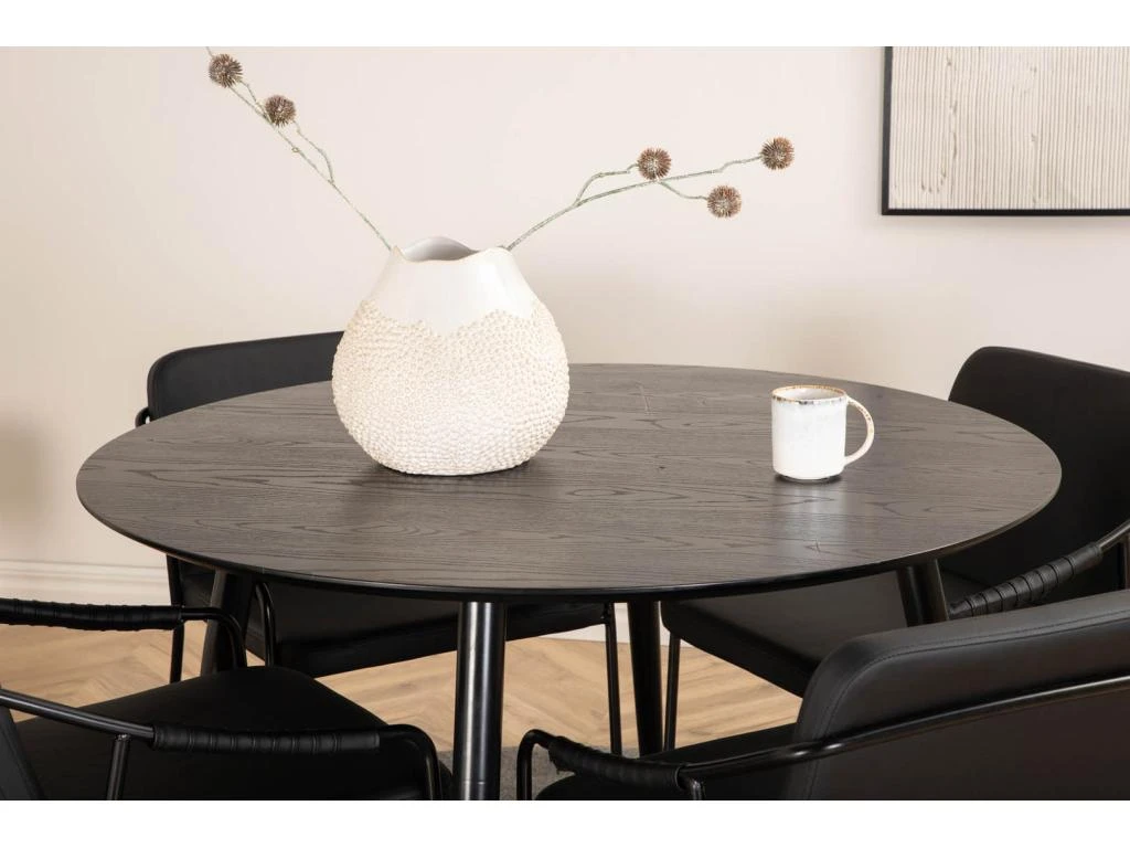 MarinaBLBL Ensemble Table, Table Noir Et 6 Comfort Chaises Noir.