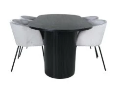BiancaBL Ensemble Table, Table Noir Et 4 Berit Chaises Velours Gris.