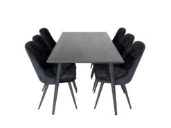 Dipp180x90BLBL Ensemble Table, Table Noir Et 6 Velvet Deluxe Chaises Velours Noir.