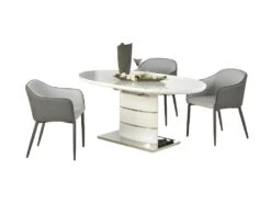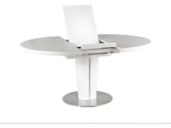 Table à Manger Extensible – 6 à 8 Couverts – MDF Et Métal Inoxydable – Blanc Laqué – TALARA