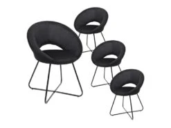TENSO – Pack Table Allongeable Effet Bois + 4 Fauteuils Velours Côtelé Noir Konae