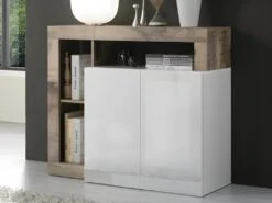 Buffet Salon Et Cuisine, 200x87x35cm, 4 Portes, Cheminée électrique, Design Industriel, Ciment