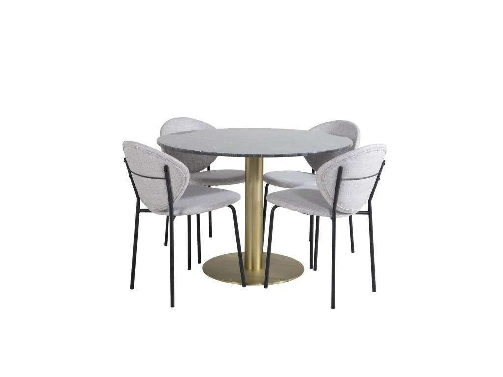 DippØ115BLBR Ensemble Table, Table Noir Et 4 Arrow Chaises Velours Gris.
