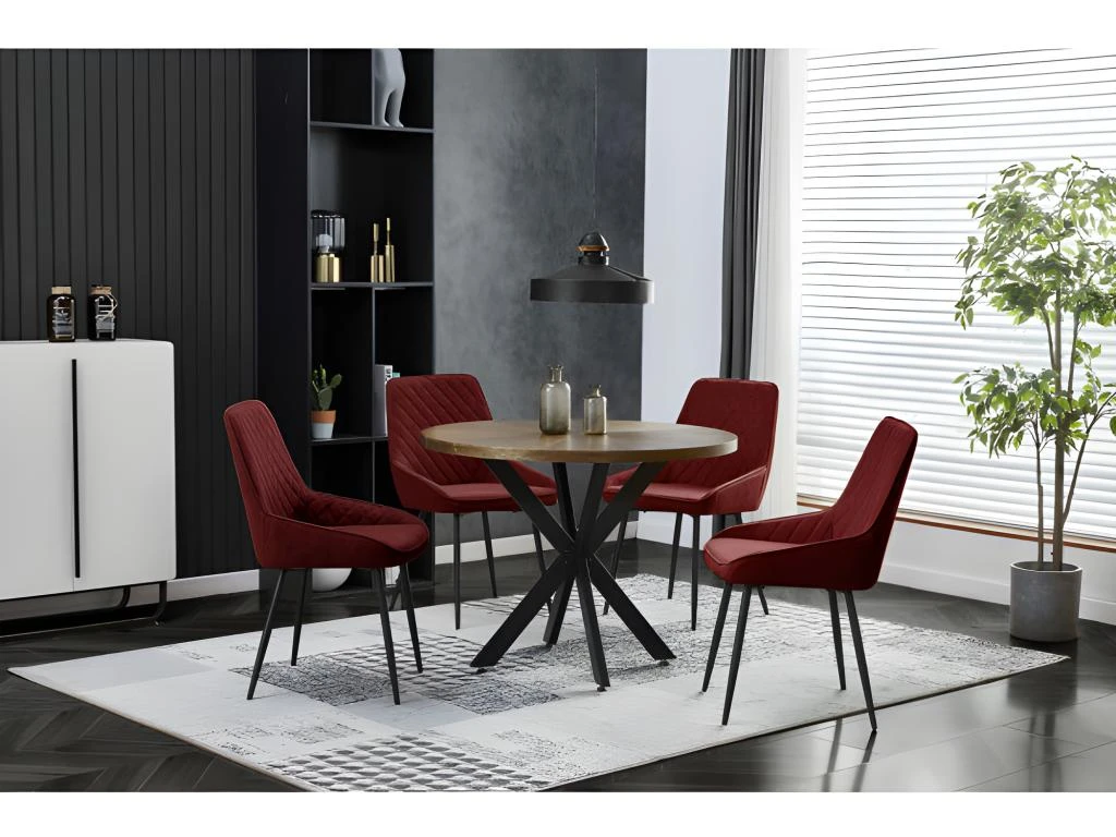 La chaise en tissu Lie de vin et métal noir GRACE s’impose dans un style contemporain-chic. Un look scandinave revisité dans un esprit vintage.