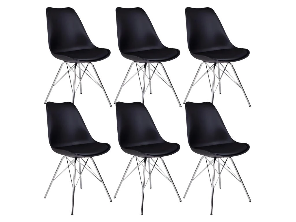 Lot de 2 Chaises Noires avec Piétement Chromé de la gamme Haga.