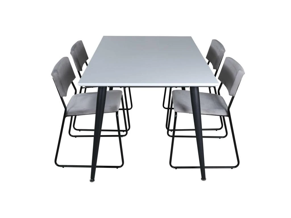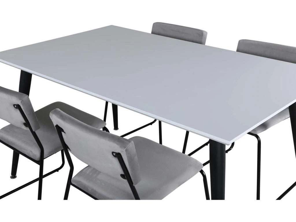 Polar180X90WHWH Ensemble Table, Table Blanc Et 6 Velvet Chaises Velours Grisclair.