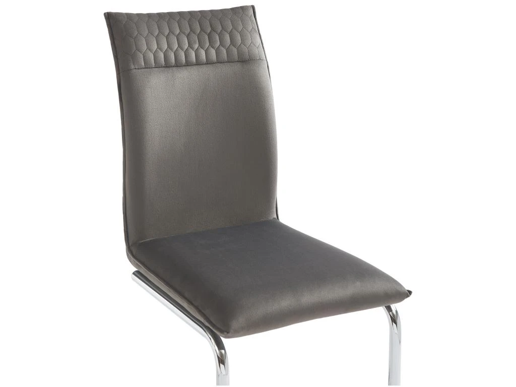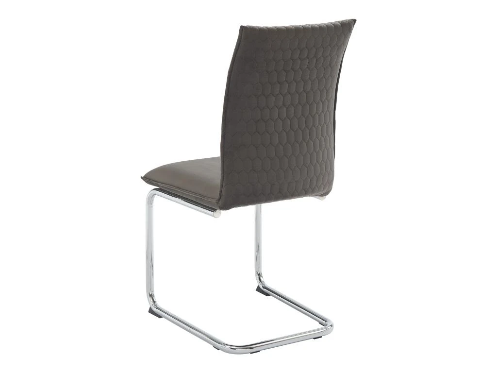 La structure de la chaise OMANIANE accueille une assise en velours et un piètement en métal chromé. Sobre et élégante, elle est également ornée de coutures en forme d’hexagone sur le haut de son dossier.
