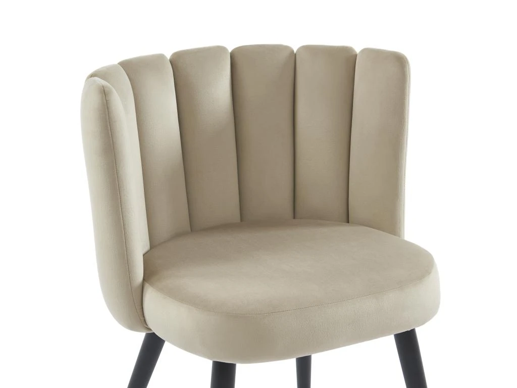 La chaise PRANILA offre un confort doux et chaleureux grâce à son revêtement en velours. Sa forme originale et enveloppante, combinée à ses pieds noirs, en feront une pièce de décoration à part entière !