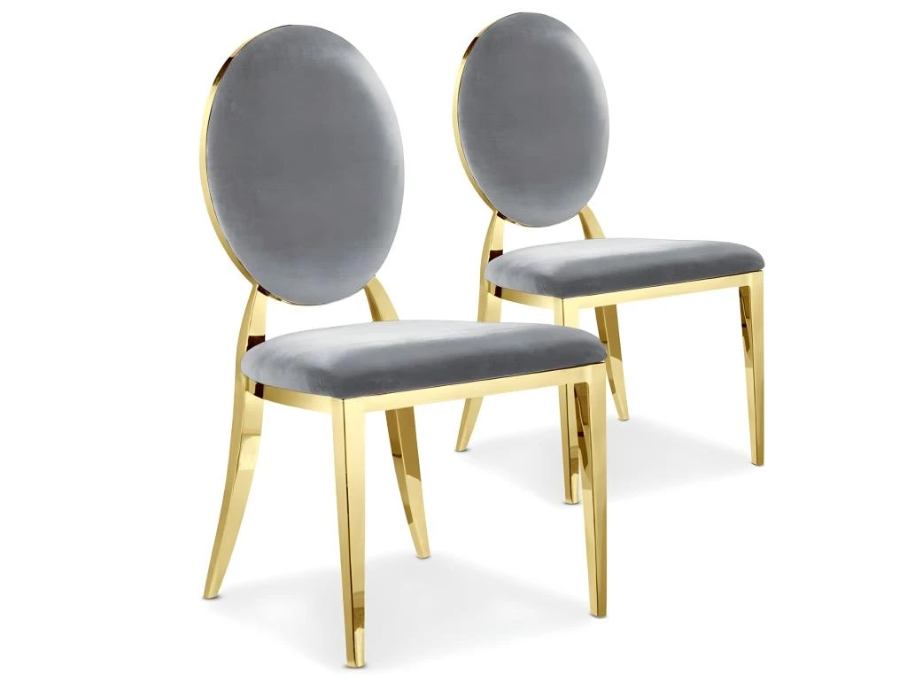 La chaise SOFIA est une chaise de qualité supérieure, avec structure et pieds en métal doré. Assise et dossier rembourrés très confortables revêtus d’un velours doux et structure dorée ultra chic.