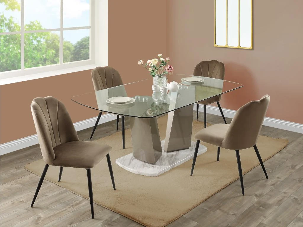 Avec ses finitions délicates et arrondies, la chaise ROSARIO apporte une touche chaleureuse à votre intérieur. Le design imaginé sur le dossier et son revêtement en tissu effet velours font de ROSARIO la chaise tendance du moment.