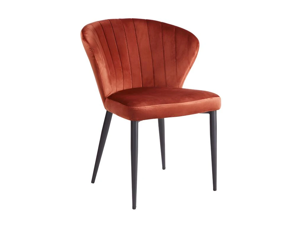 La chaise CRUSTI présente un revêtement en velours au toucher doux et agréable. Son assise est maintenue par 4 pieds en métal noir de finition mate. La combinaison de ces deux matières en font une chaise fine et robuste.
