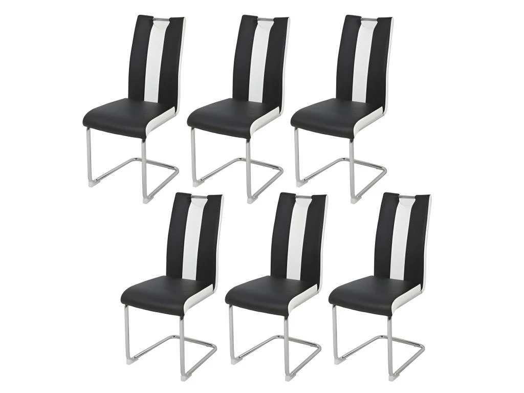 Lot de 6 chaises – Simili blanc et noir – L 55 x P 45 x H 99 cm – LEON