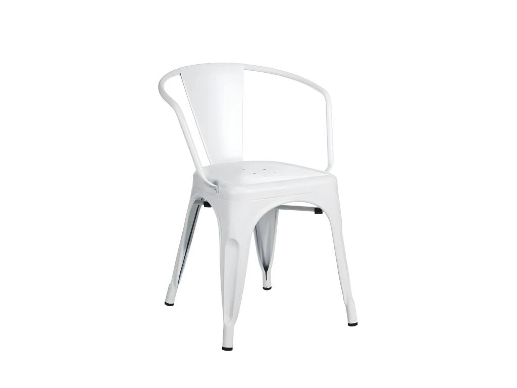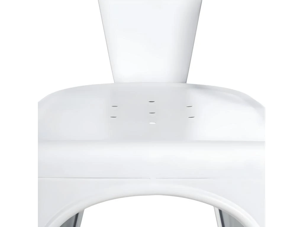 Structure en acier coloris blanc. Hauteur d’assise : 45cm. Profondeur d’assise : 36cm. Hauteur des pieds : 38cm. Empilable.