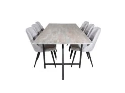 Jepara Ensemble Table, Table Teck Et 6 Velvet Deluxe Chaises Grisclair, Noir.
