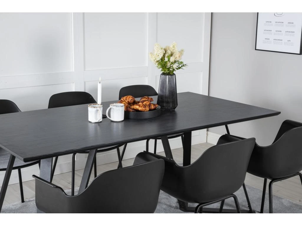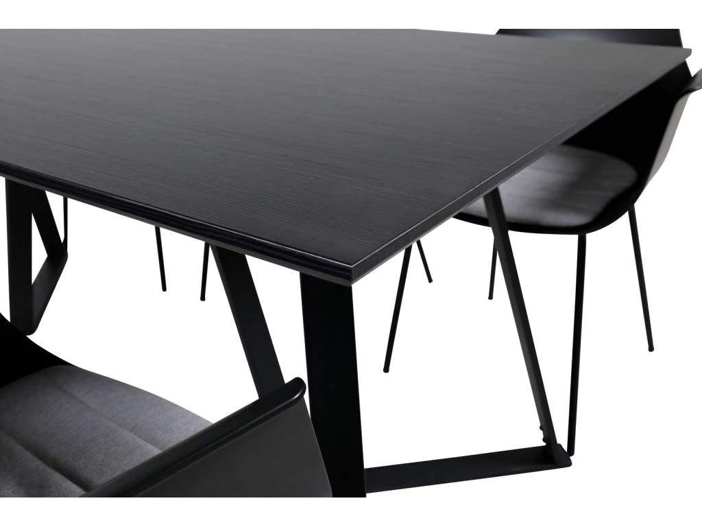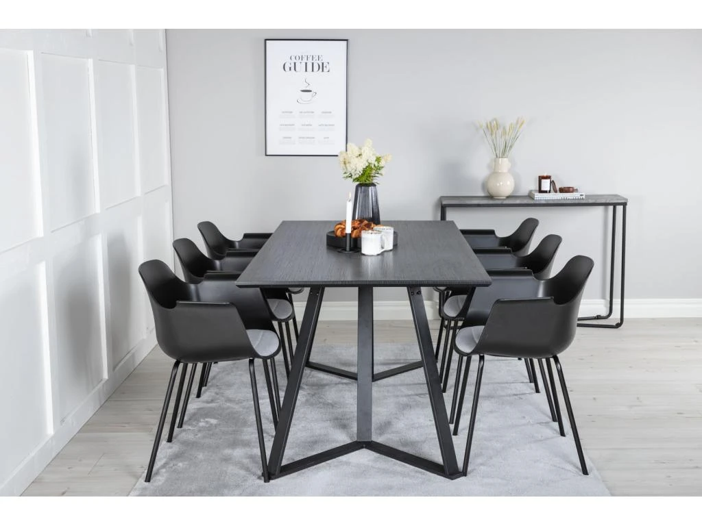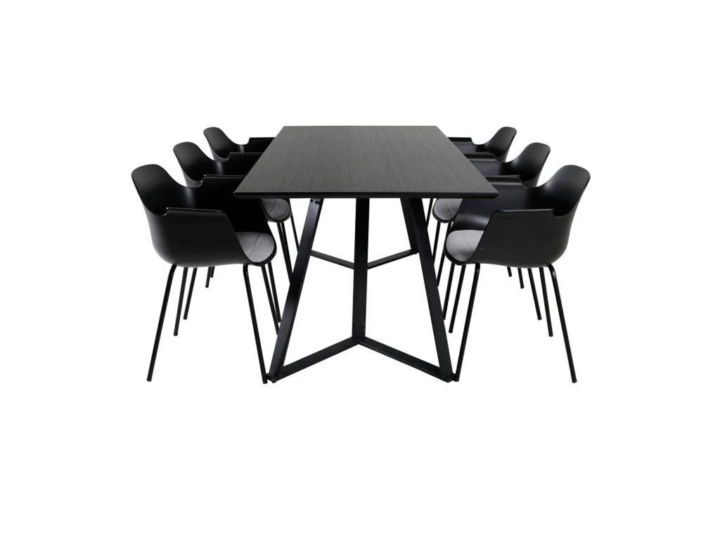 MarinaBLBL Ensemble Table, Table Noir Et 6 Polar Chaises Velours Gris.