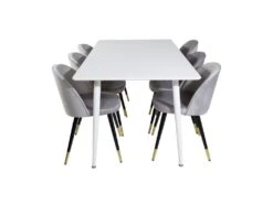 Polar180X90WHWH Ensemble Table, Table Blanc Et 6 Velvet Chaises Velours Grisclair.