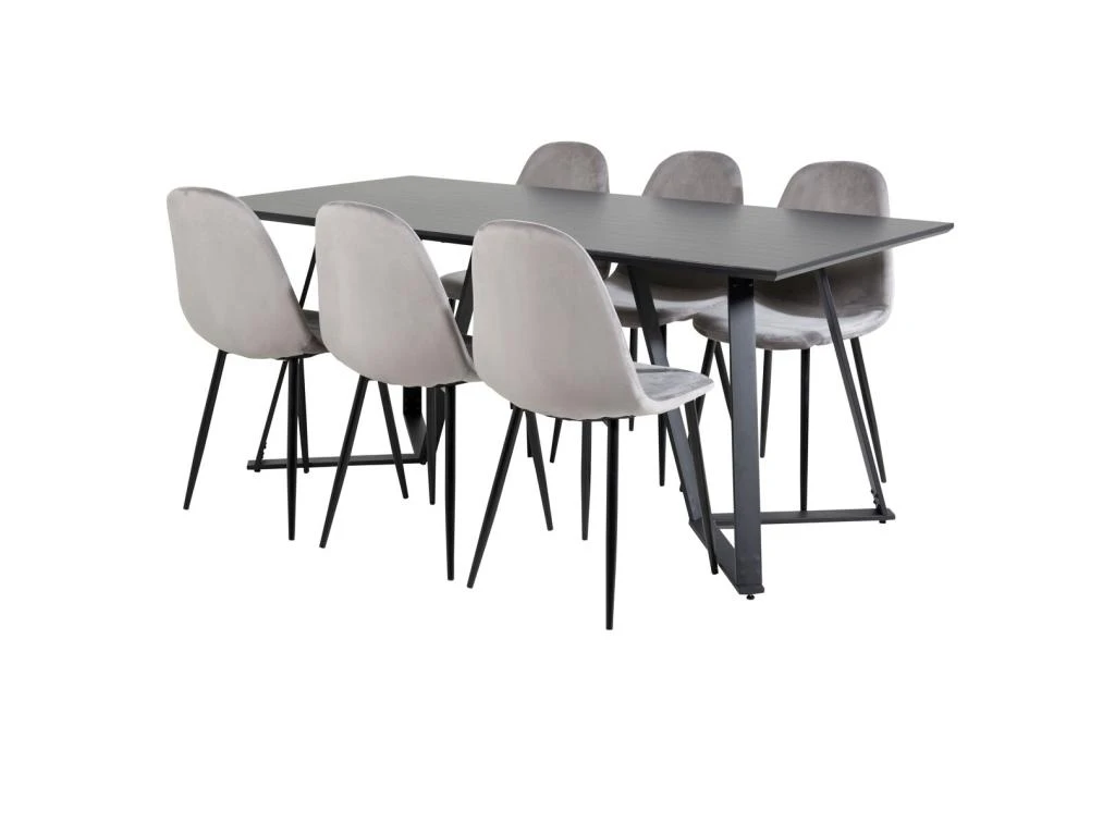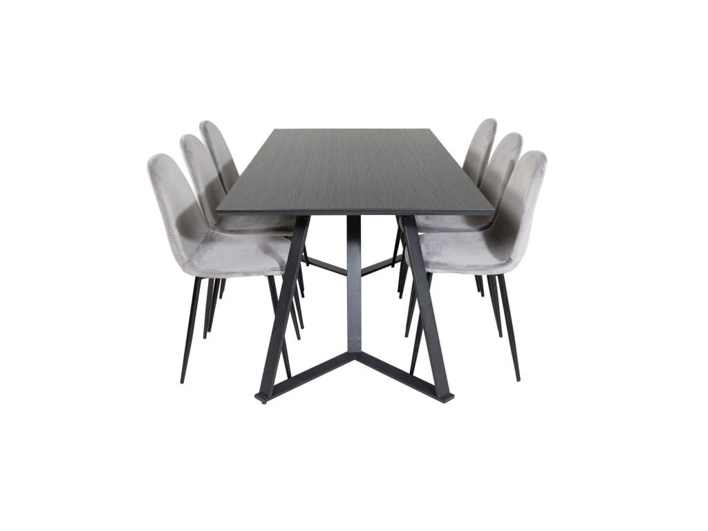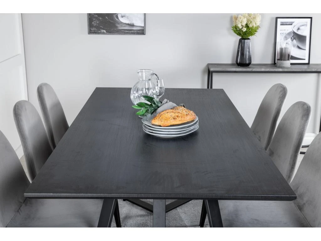 DippĂ115BLBR Ensemble Table, Table Noir Et 4 Arrow Chaises Velours Gris.