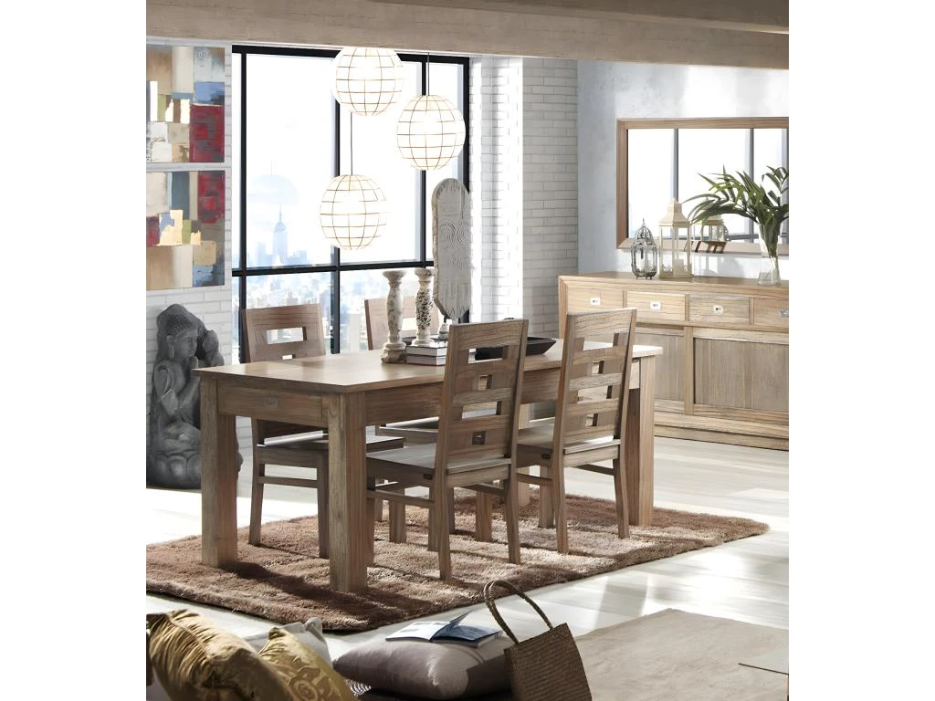 Table à Manger 6 Couverts En Verre Trempé, MDF Et Acier Inoxydable – Naturel Clair – MELODIE II