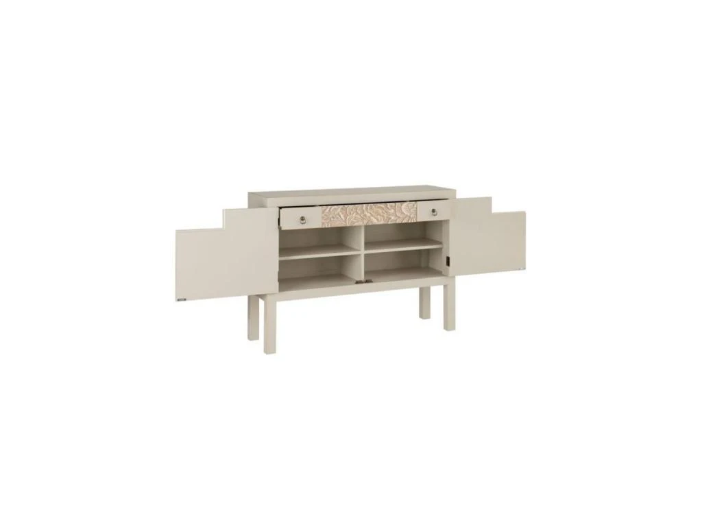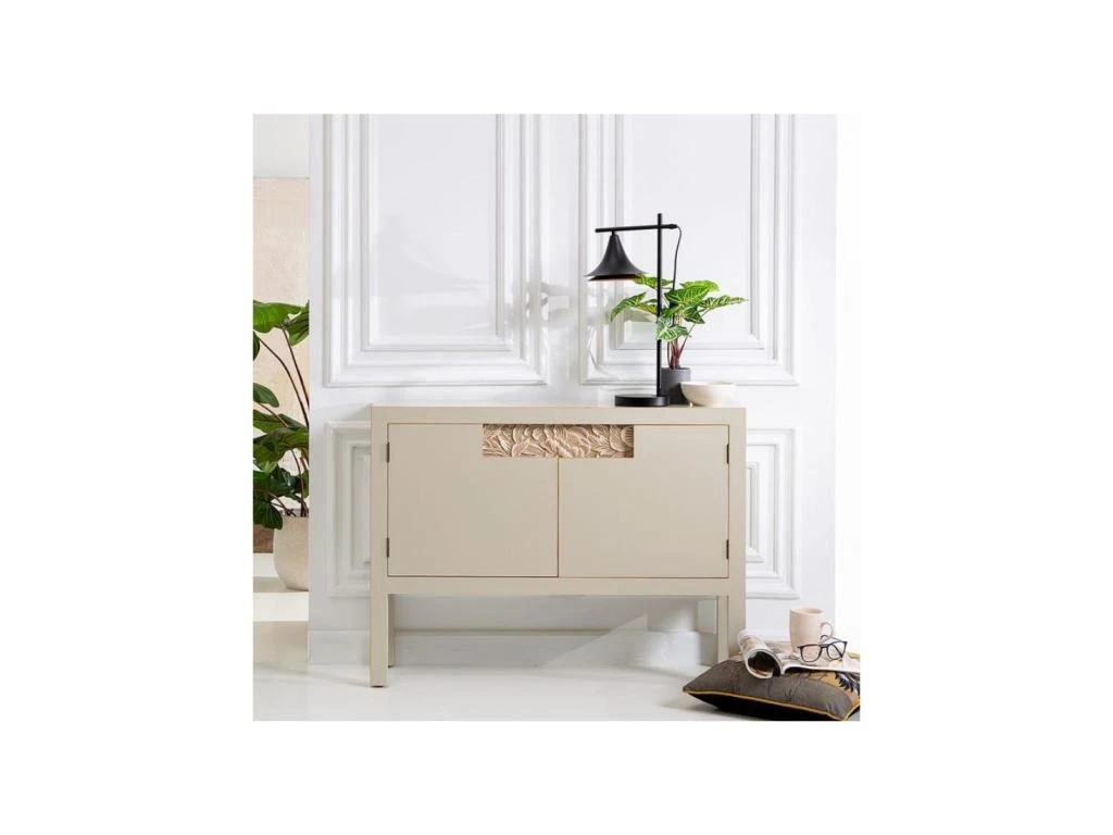 Apte à prendre place au sein d’un ameublement éclectique ce meuble de complément propose un mélange du code esthétique des meubles chinois, un design minimaliste et des sculptures inspirées des meubles ethniques.