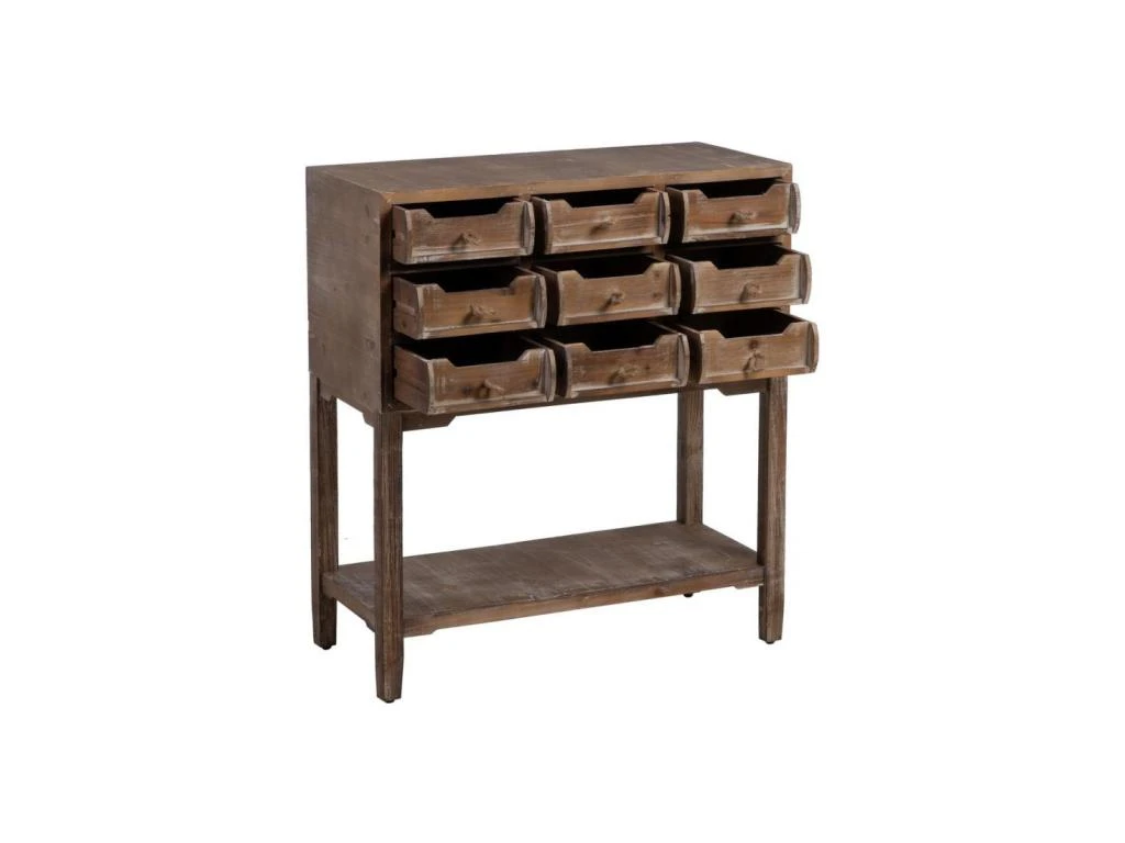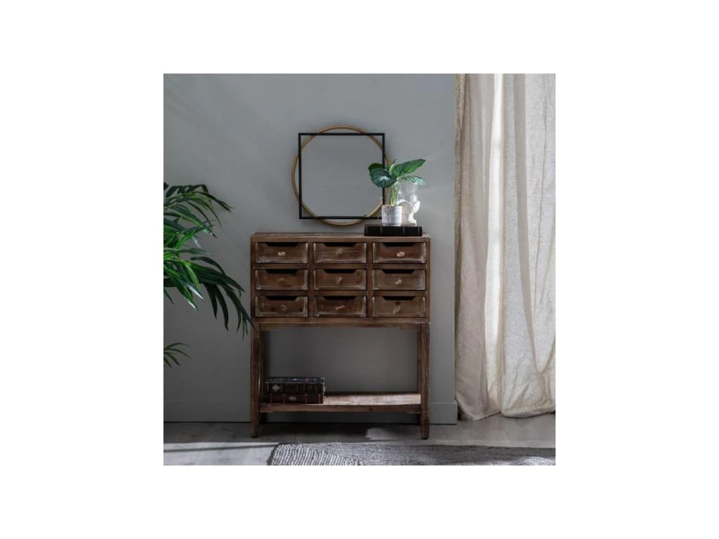Apportez une d’authenticité à la déco de votre salon avec ce meuble d’entrée 9 tiroirs au charme suranné.